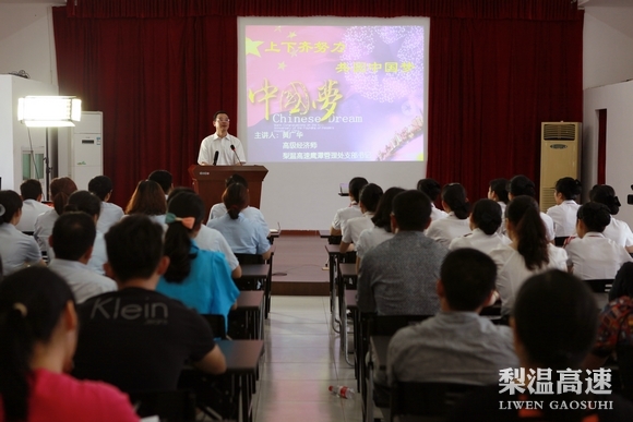 授课中,该支部书记首先从“中国梦”出发,讲解了“中国梦”历史底蕴和时代内涵。并结合高速公路行业实际,分析了工作离家远、对家照顾少等为实现梦想而面临的问题。同时围绕“高速人如何实现梦想”这个热点话题,讲述了如何在“五四三”思想工作法基础上,结合人文关怀、加强激励机制创新等工作,提高员工个人成就感和幸福指数,使员工勤于学习、善于思考、勇于实践、敢于创新,不断加强实践锻炼和自身修养,努力提高综合素质,努力实现自我价值。