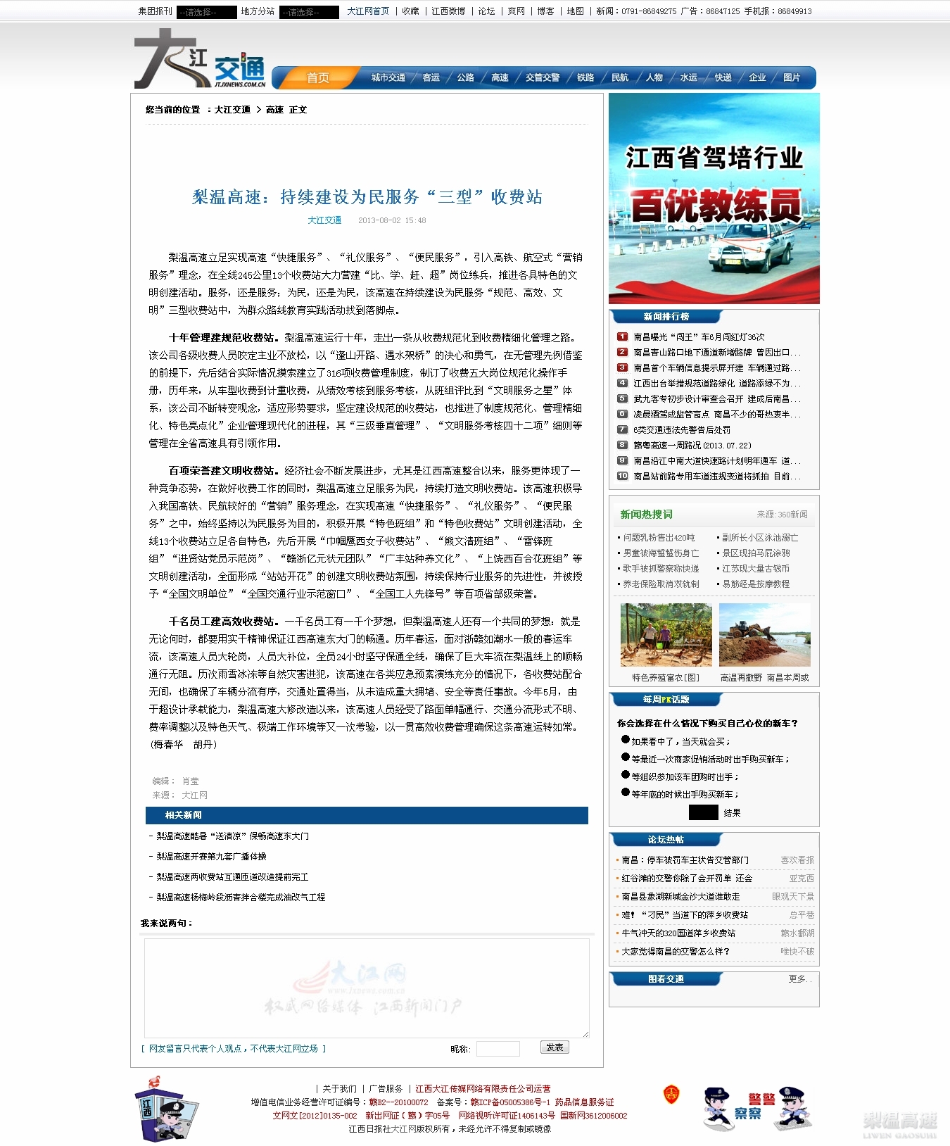 正文: 梨温高速立足实现高速“快捷服务”、“礼仪服务”、“便民服务”,引入高铁、航空式“营销服务”理念,在全线245公里13个收费站大力营建“比、学、赶、超”岗位练兵,推进各具特色的文明创建活动。服务,还是服务;为民,还是为民,该高速在持续建设为民服务“规范、高效、文明”三型收费站中,为群众路线教育实践活动找到落脚点。
