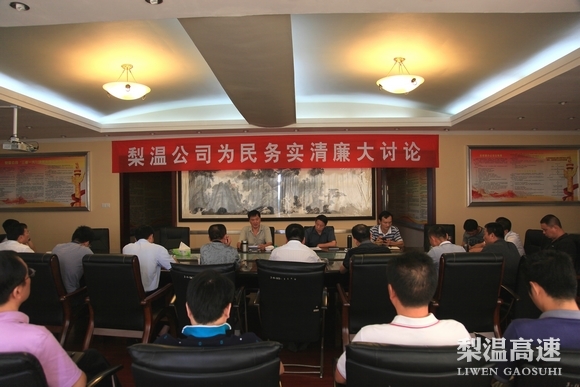 8月30日,梨温公司党委组织开展“为民务实清廉”大讨论活动,该公司党委在家委员、所属六个单位党政负责人,机关各部门负责人围绕实现中国梦与增强群众路线观点这一主旨,充分结合工作岗位实际,着眼在推进公司科学发展上畅所欲言,在为民办实事上踊跃建言献策,讨论活动取得丰富成效,为下步工作指明了方向。