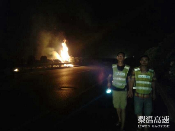 8月14日深夜,梨温高速公路K497+700m的中央隔离带燃起大火,该高速养护人员快速反应,与高速交警、路政联勤联动,配合玉山县消防中队展开迅速组织起救援,最短时间避免更大事故的发生。