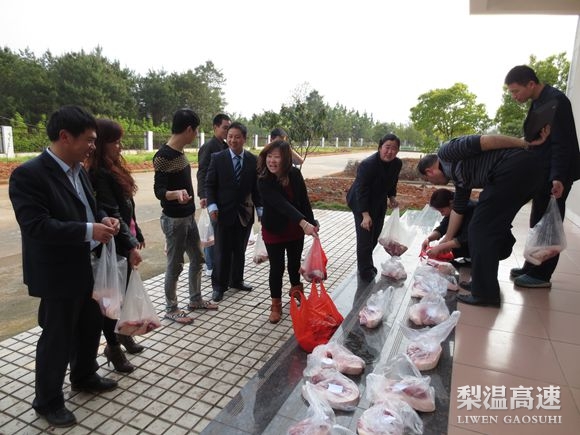 广丰收费站员工别开生面“分猪肉”