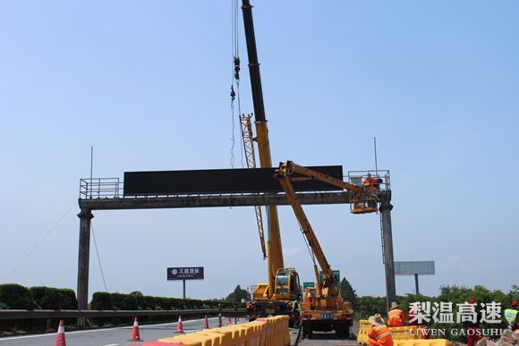 梨温高速公路K619+500新建龙虎山服务区进出口原树立着两处大型可变情报板龙门架,该龙门架横跨整个半幅行、超车道及硬路肩,直接影响到新建服务区进出口路面扫尾工程。