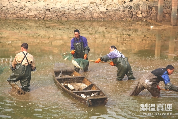 临近年关,梨温高速一处鱼塘开始捕捞,总计有上万斤鱼儿起舱。近日在捕捞现场看到,一条条鲜美肥硕的草鱼、青鱼、鲢鱼、鲫鱼穿水乱跳,工人们捞鱼则忙个不停,在场围观的大伙儿笑声不断,生态园里又是一个丰收好风光。