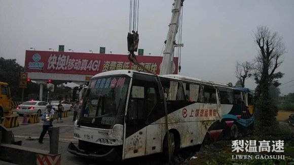 6月17日,梨温高速上一辆大客车在进入上饶东收费车道时,超车不当侧翻在边沟里,车上几十个人顿时慌乱不堪,所幸收费站工作人员合力营救,安全转移了全部受困司乘人员。