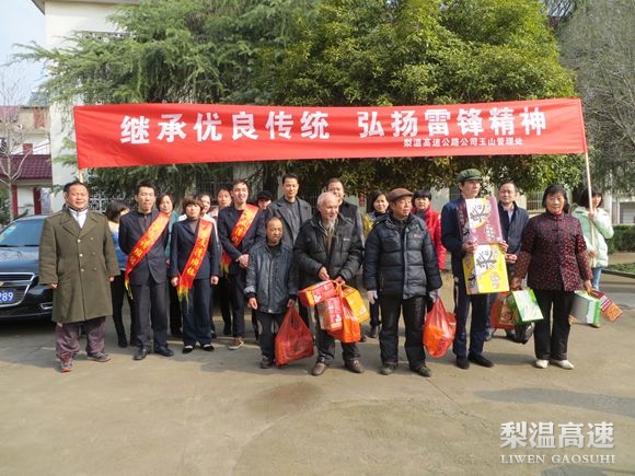 第51个学雷锋纪念日,为大力弘扬雷锋精神,梨温高速各单位纷纷开展“学雷锋在行动”活动,他们自发组织去走访聋哑儿童、看望孤寡老人等、帮助困难司机,春光明媚的高速通途中,一个个“小雷锋”身影活跃在城市村庄,一颗颗“爱心”传递人间正能量。