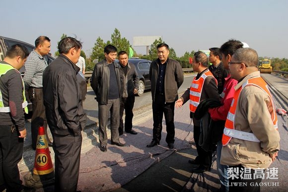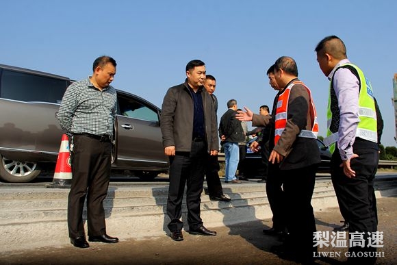 11月27日,总公司总经理陈立新深入梨温高速察看指导梨温路面专项工程建设。总公司总经济师钟家毅,梨温公司总经理潘皓、党委书记周洪达,梨温路面专项工程项目办主任漆志然,开发经营部长周晖等陪同。