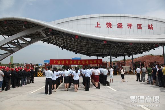 8月29日上午10时56分,随着上饶市副市长朱寅健下达开通令,梨温高速上饶经开区收费站正式开通运营。此前,在上饶经开区站收费广场,上饶市政府、上饶经济技术开发区管委会、各参建单位、接管单位梨温高速杨梅岭管理处联合举行了简单开通仪式。省交通厅副巡视员夏太胜致开通仪式辞,上饶市副市长朱寅健,江西公路开发总公司总经济师钟家毅,梨温公司领导周洪达、邱国土等参加开通仪式。