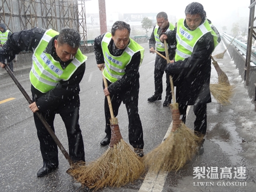 付群要求,一是要加强领导,提高政治敏感性,确实做好后勤保障和文明服务工作;二是做好抗冰雪物资储备,做到设备、设施充足、应急队伍人员到位;三是加强值班,确保信息畅;四是加强与气象部门联系,及时关注天气变化;五是加强与路政、交警部门联系,启运联勤联动机制,确保高速公路安全畅通。