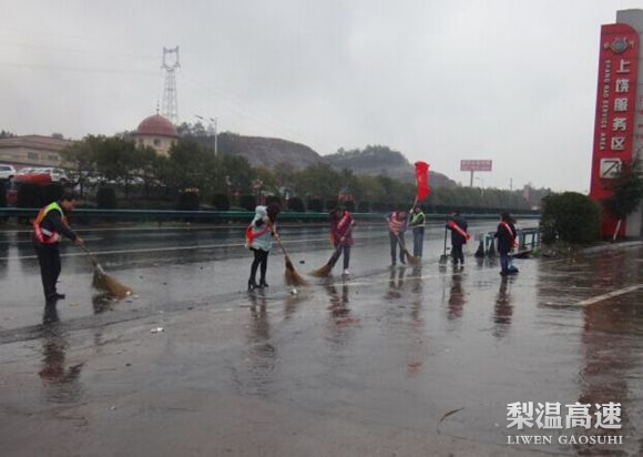 3月5日当天,上饶管理处组织杨梅岭收费站雷锋班组及机关青年团员在上饶服务区开展志愿清扫活动,在服务区广场周围,随处可以看到志愿者的身影,他们有的手执扫把、有的手拿撮箕、有的手握铁锹对服务区广场的各个卫生死角进行彻底的清除。今年青年志愿者服务日又恰逢元宵节,雷锋班组还在服务区广场为过往司乘人员送上热气腾腾的汤圆,并送上一份团圆的祝福———“元宵节快乐!”。上饶管理处青年志愿者以实际行动传播和弘扬了雷锋精神,诠释雷锋思想的真谛,向过往司乘朋友展示了梨温高速员工的良好精神风貌和优质服务形象。(李慎国、谢基远)