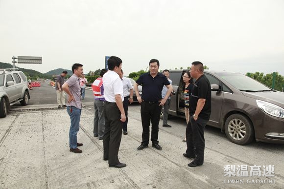 6月2日,总公司总经理陈立新深入梨温高速检查指导工作,总公司调研员叶香春,梨温公司总经理潘皓,副总经理邓琼华,技改项目办主任漆志然、副主任付群,总工办、工程养护处负责人等陪同。