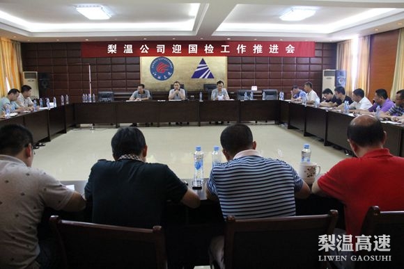 8月3日下午,梨温公司在公司机关四楼会议室召开会议,就梨温高速迎国检前阶段工作进行了小结、下步迎国检冲刺工作进行再动员再部署。梨温公司总经理潘皓、调研员邱国土出席会议并讲话,副经理邓琼华主持会议,收费监控处、工程养护处、行政办公室和党委办公室负责人、各管理处负责人、各养护所、交通设施综合维修队负责人及各收费站站长共计40余人参加了会议。