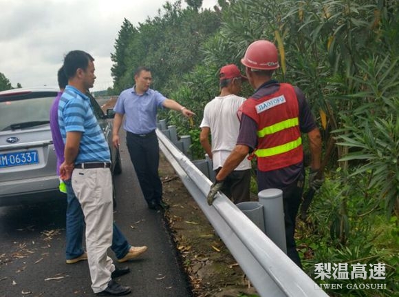 8月12日,梨温公司总经理潘皓赴鹰潭处、玉山处察看路容路貌及玉山站封站期间施工、收费大棚改扩建工程的准备工作。