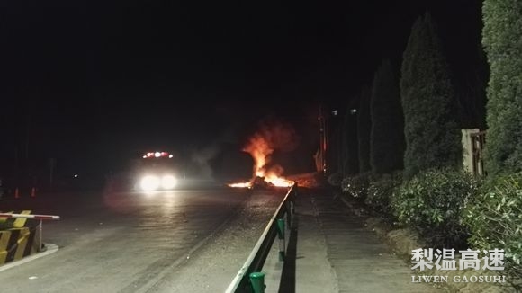12月20日晚间七时,杨梅岭收费站进出高速的车辆井然有序,忽然一辆车牌为皖M5A316的大型货车突现火灾,划破了这寂静的长空。