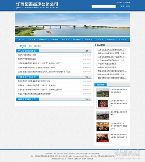 近日,由公司纪委开辟的“廉政建设”专栏,正式在梨温高速网上线试运行。专栏旨在丰富“两学一做”学习教育内容,推进公司廉政文化建设,创新党风廉政建设方式,拓宽党纪政纪、廉政制度宣传教育的载体。