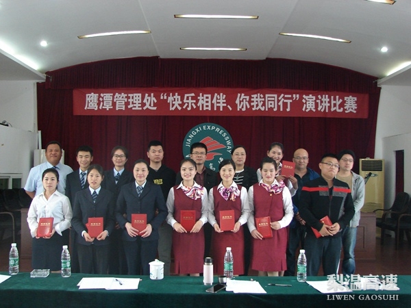为迎接“五四”青年节,进一步提高窗口文明服务水平和丰富员工文化生活,鹰潭管理处举办“快乐相伴 你我同行”演讲比赛。参赛选手紧紧围绕演讲主题,结合自身和身边的高速人、高速事、高速情,从不同角度对“爱岗敬业”、“真情服务”进行了诠释和解读,充分展示了梨温高速人朝气蓬勃、锐意进取的精神面貌。