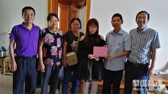 得悉陈梅家庭满足助学条件后,该中心工会立即启动助学程序,并第一时间把组织的关怀传达到陈梅家中,并勉励陈梅考上大学的女儿通过学习成材,回馈亲人殷切期盼。(胡丹)