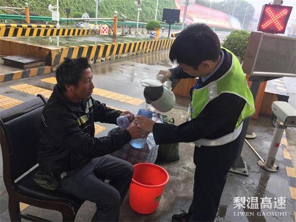 12日凌晨3点左右,冷风细雨中,一名中年男子拎着多件行李从高速步行下来,一脸倦意。该站当班收费员急忙上前询问情况,得知男子姓徐,本打算去外地亲戚那打工,没想到半途被大巴司机“甩”在鹰潭东高速匝道口,人生地不熟,手机又没电,面对冷的瑟瑟发抖、一筹莫展的徐先生,收费员赶紧安抚其情绪,为其端上热水,并为其手机充电。在该站工作人员的协助下,徐先生顺利联系上了亲戚,踏上了再出发的旅途。
