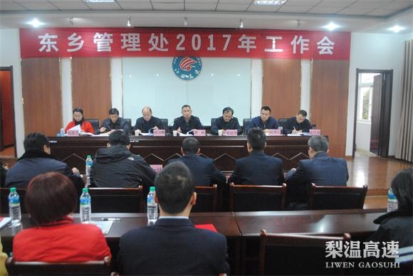 2月22日,东乡管理处召开2017年工作会,梨温公司总经理潘皓、副总经理邓琼华到会指导,东乡管理处领导班子、站级干部、员工40余人参加了会议。
