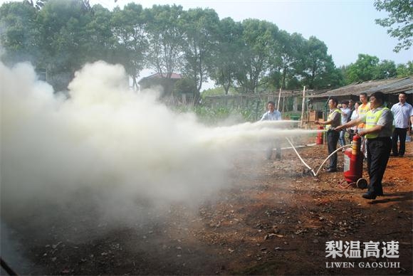 5月16日下午,东乡处组织所属各单位的义务消防队队员和收费班长、电工、驾驶员、厨师等重点岗位工作人员在进贤收费站进行了春季防火消防演练。