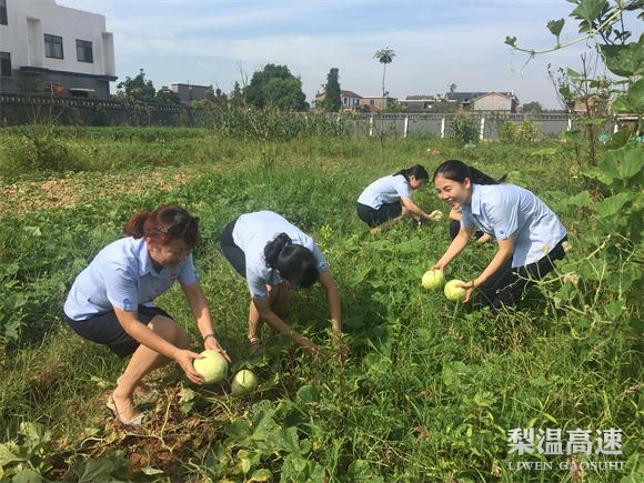 时值7月,正是“一种三养”收获的季节,梨温公司樟树东收费所种植的当季时令蔬果有辣椒、空心菜、茄子、黄瓜、丝瓜、胡子、南瓜、苦瓜、梨瓜、西瓜等二十多个品种,现已呈现出一片果实累累的丰收景象。