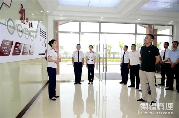 8月1日,梨温公司领导万良红同志深入南昌南收费所调研并指导开通前期工作,公司党委副书记、纪委书记雷霆陪同,总经理助理付群及行办、党办、收费处负责人随同。