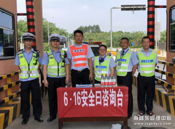 6月16日上午,温泉收费站工作人员联合高速交警,在收费广场深入开展安全生产宣传咨询日活动。
