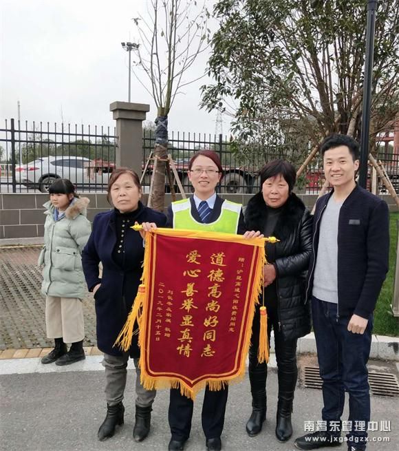 2月14日, 老人的儿女们满怀感激地来到了弋阳收费站,把一面写着“道德高尚好同志,爱心善举显真情” 的锦旗赠送给了夏群燕同志,再次表示了感谢,赞扬了弋阳收费站员工热心助人的高尚美德。