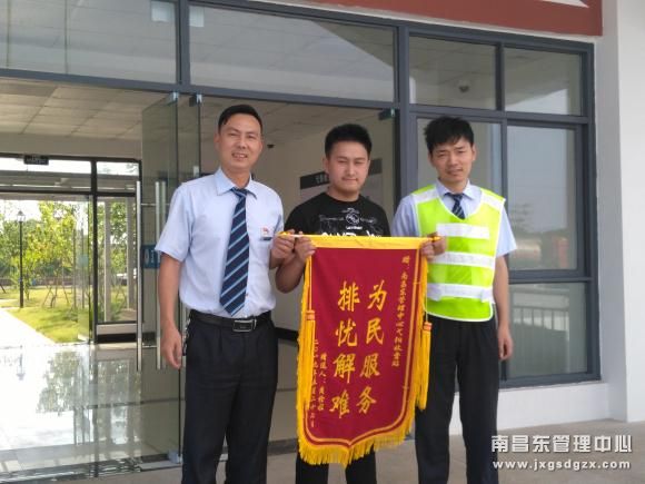 5月28日下午,河南籍司机周师傅来到了南昌南管理中心上饶弋阳收费站,将一面印有“为民服务、排忧解难”的锦旗,赠送给弋阳站的员工,向曾热心伸手帮助他的收费员工表示感谢。