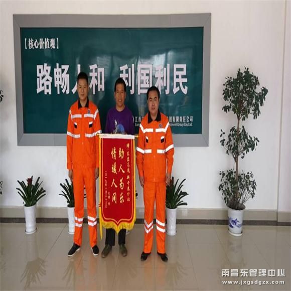 “正当我又气又急最无助的时候,是你们带给了我希望。”10月23日,代某向江西高速南昌南中心新干养护站送来一面写有“助人为乐 情暖人间”的锦旗,对养护站员工助他返家的善举表示感谢。