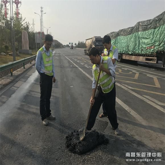 为保持车道良好通行环境,确保司乘人员出行安全,该站积极与养护站协调,调用了路面备用沥青,组织员工自己动手对坑槽进行修补。(苏丹琼)
