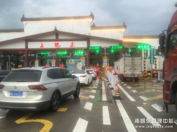 9月1日下午17:20时,因强雷电,导致南昌南管理中心上饶东收费站出入口所有收费设备跳闸、死机,无法正常收费。该值班站长立即起动“一站一策”保畅方案,应对车流高峰。