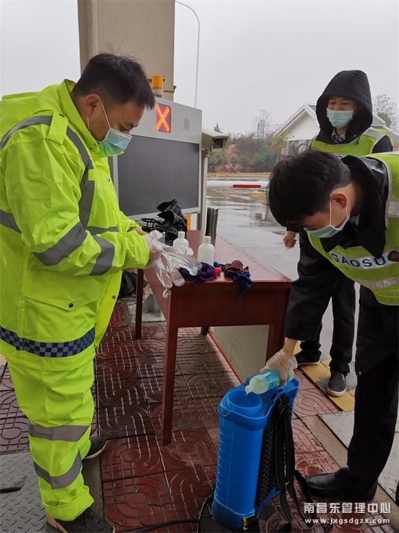 到站后第一时间加强对站区及人员的管控,协调地方关系购买防疫物品,每天安排人员对站区重点部位、收费岗亭消毒杀菌,站办负责每天两次的全站员工体温测量、防疫物品采购发放登记及疫情报送,稽核票管负责数据统计和CPC卡的消毒,系管负责系统维护及协助站办开展防疫工作,班长班员负责车道键盘鼠标消毒和岗亭车道及广场的卫生,后勤人员做好食堂卫生、食品安全及员工分餐制,做到全员在岗在位人人参与。