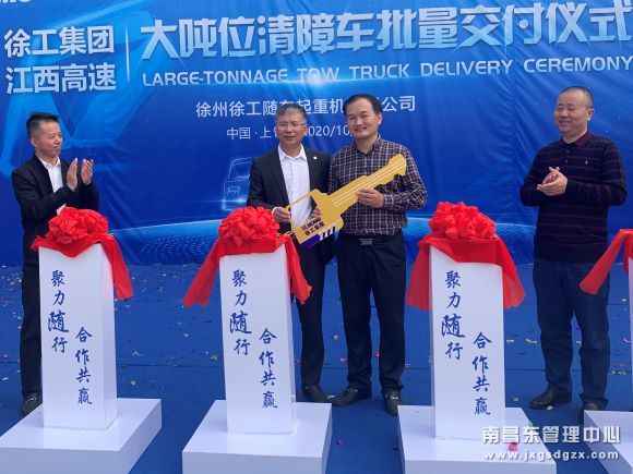 10月27日,徐工随车有限公司在南昌南管理中心清障救援队杨梅岭停车场内,隆重举办大吨位清障车批量交付仪式,该中心副总经理邓琼华,徐工随车总经理、党委书记孙小军等加了本次活动。