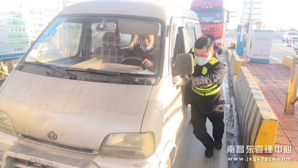 当日下午四点半左右,正值该站车道卫生大扫除,一辆车牌为赣A075F6蓝牌面包车缓慢行驶到该站出口3道时,发动机产生故障,导致车辆抱死,车身后轮冒出白烟。此时有着多年处理紧急情况经验丰富的站长立上前询问司机车辆情况。在得知车辆无法启动行驶后,他便又组织员工一起将车辆推离到收费广场,并立即联系就近维修点。