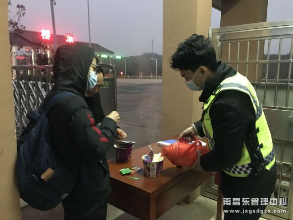 傍晚的寒气袭人,故障车辆上的司乘人员被冻得卷缩着身子。该站及时将“温馨服务”送到每个滞留乘客的手中。在体温检测、查看绿色通行码后,工作人员把乘客引领到“司乘之家”休息室,为他们提供了方便面、茶水。晚上19点,值班站长联系了车辆把司乘人员转送到车站。