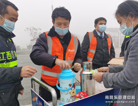 初六春暖乍寒,大量出行的车辆都滞留在收费广场附近排成长龙。早上7时许,收费广场上浓浓迷雾中悄然出现了一群穿着反光衣的年轻人。该站及时组织志愿者设立便民服务台,陆续敲开滞留车辆的车门无偿为司乘人员提供开水、泡面、饼干、面条等食物,叮嘱广大司乘做好防疫措施,戴好口罩尽量避免人员聚集,在这寒冷的早晨给他们送去一丝丝暖意。