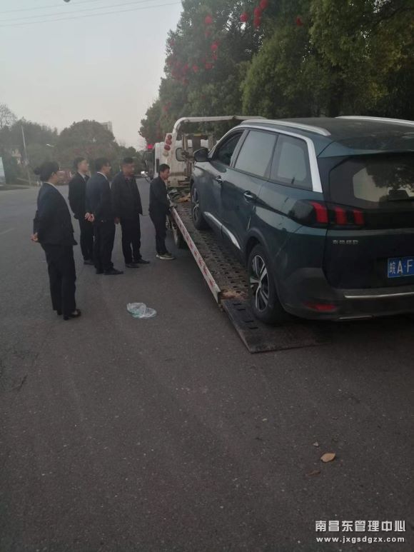 不一会,拖车便出现在便民服务室的门口,结果拖车的时候又出现了新问题,原来后备箱满载的“爱”太多了,车子不好上拖车。这个问题,只见值班站长拿出随身携带的对讲机一声呼唤,玉山站青年文明号突击队的成员们就“蹭蹭蹭”的冒了出来,大家三下五除二就清空了后备箱,让车子顺利上了拖车。