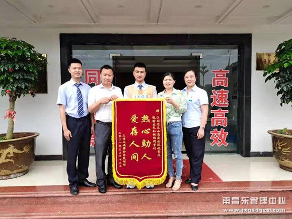 5月29日下午,玉山收费站收到了一份特殊的礼物。来自上海的一对中年夫妇将一面绣有“热心助人 爱存人间”的锦旗和一封感谢信送到玉山收费站,表达对该站工作人员热心帮扶的感激之情。