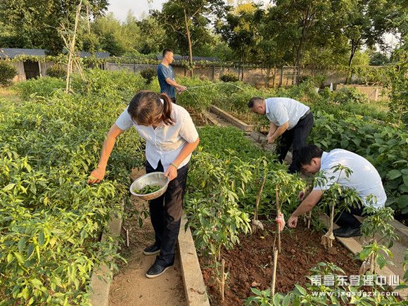 “你看这辣椒、韭菜和空心菜长得多好啊!今天又可以吃到自己种的无公害蔬菜了。”只听到一位手里正忙活着采摘的同事乐呵呵地说道。