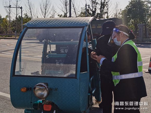 近日,在南昌南管理中心弋阳收费站入口前,有一辆三轮车正行驶而来。当班收费员在发现该车辆之后,立即上前协助驾驶三轮车的两名男子将三轮车移至安全区域,并告知高速公路禁止三轮车、摩托车通行的明令和可能出现的危险。
