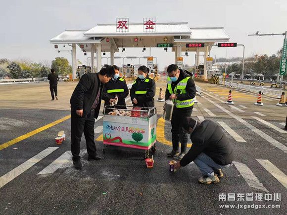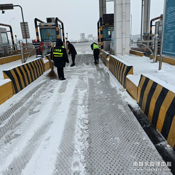 全员上岗,凝聚合力。樟树东所属四站快速清理收费广场及站区内积雪,设立安全警示标志,提醒过往司乘注意行车安全。疏导员对过往车辆及时疏导,确保不出现大面积堵车现象。