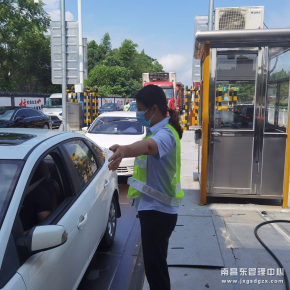 高温酷暑,南昌南管理中心东乡收费站又开始了分流工作,“女铁人”陈璐站长带领站员们在收费广场用汗水确保车道安全、畅通、有序。