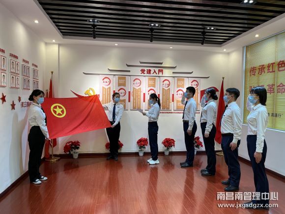 “我志愿加入中国共青团,坚决拥护中国共产党的领导......”南昌南管理中心南昌南收费所的青年团员们面向团旗用洪亮坚定的声音庄严宣誓。