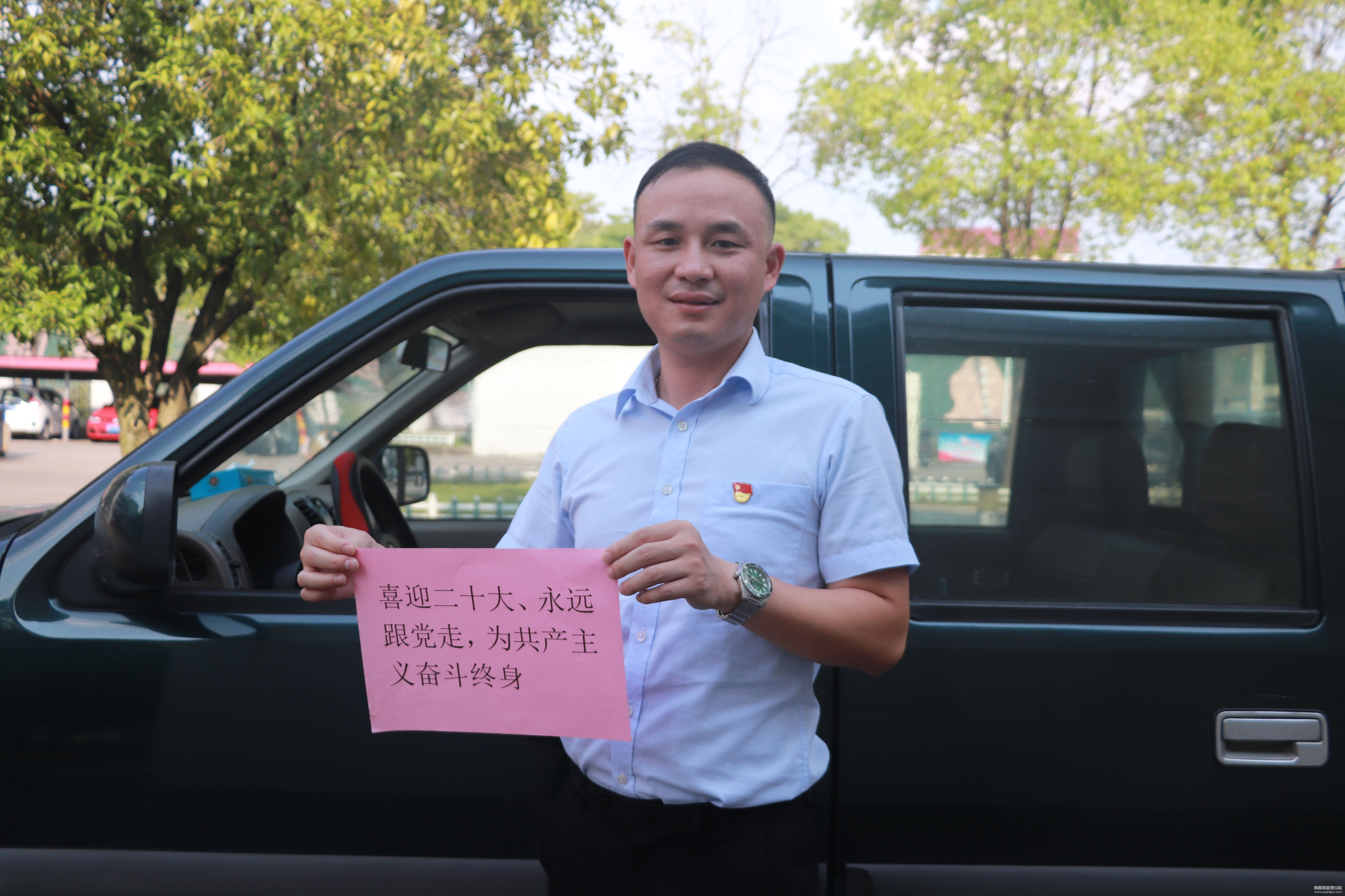 “党的二十大即将召开,作为一名共产党员,我的内心非常激动。”作为收费站基层管理者,我将带领我的员工,全面提升优质文明服务,全力以赴做好收费保畅工作,不断满足人民群众对美好出行的需要,给司乘出行带来实实在在的便捷和舒心,给人民群众交出一份满意的答卷,以实际行动迎接党的二十大胜利召开!