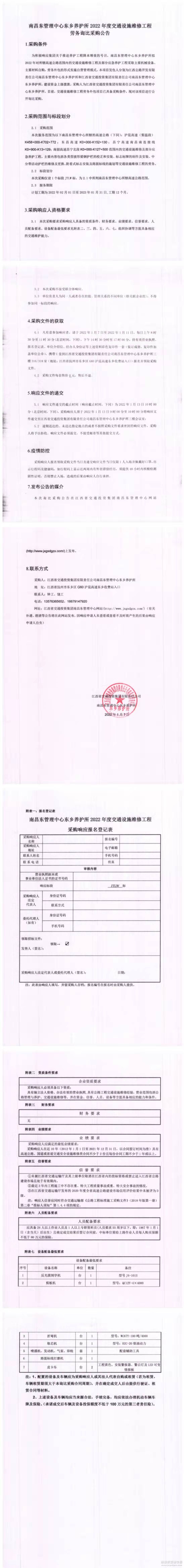 南昌南管理中心东乡养护所2022年度交通设施维修工程劳务询比采购公告