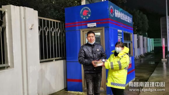 2月17日晚,阴雨绵绵,寒气袭人,南昌南管理中心杨梅岭收费站值班站长在车道指挥车辆时,突然看到大门口有一个孤单的身影在寒风中不停地徘徊,该站站长立即上前询问。