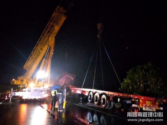 大伙儿在接近零度的寒风中,越搬越起劲,晚饭都没顾上吃,一直忙到了晚上7点50分,才将完整的货物全部搬运完毕,再由转货车将货物运至停车场。晚上8点多,此时的天空飘着小雨夹雪,两台吊机也抵达事故现场,救援人员抓紧时间,将货车车头和车身一同起吊,放置行车道,再将后面的小车起吊摆正,随后,迅速地把2辆事故车拖离现场。