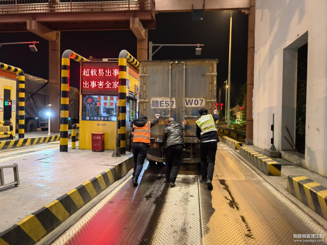 3月2日晚,一辆小型货车行驶至南昌南管理中心弋阳收费站出口时突然熄火停滞不动,司机尝试连续打火都无法启动,无奈地停在了车道口,当班收费员发现情况后,急忙上前询问,得知情况后,收费班长组织人员帮助司机把车辆推至出口外广场的安全位置。