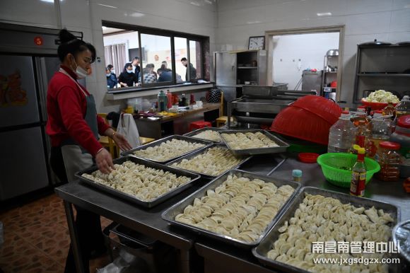 虽然远离南昌市封管控区,该中心干部员工防疫照常不松懈,3月20日,主动邀请进贤县医疗队来中心进行第二轮核酸检测。下午,做完核酸检测的人员,积极响应综合行政部的号召,来到厨房帮助包饺子。