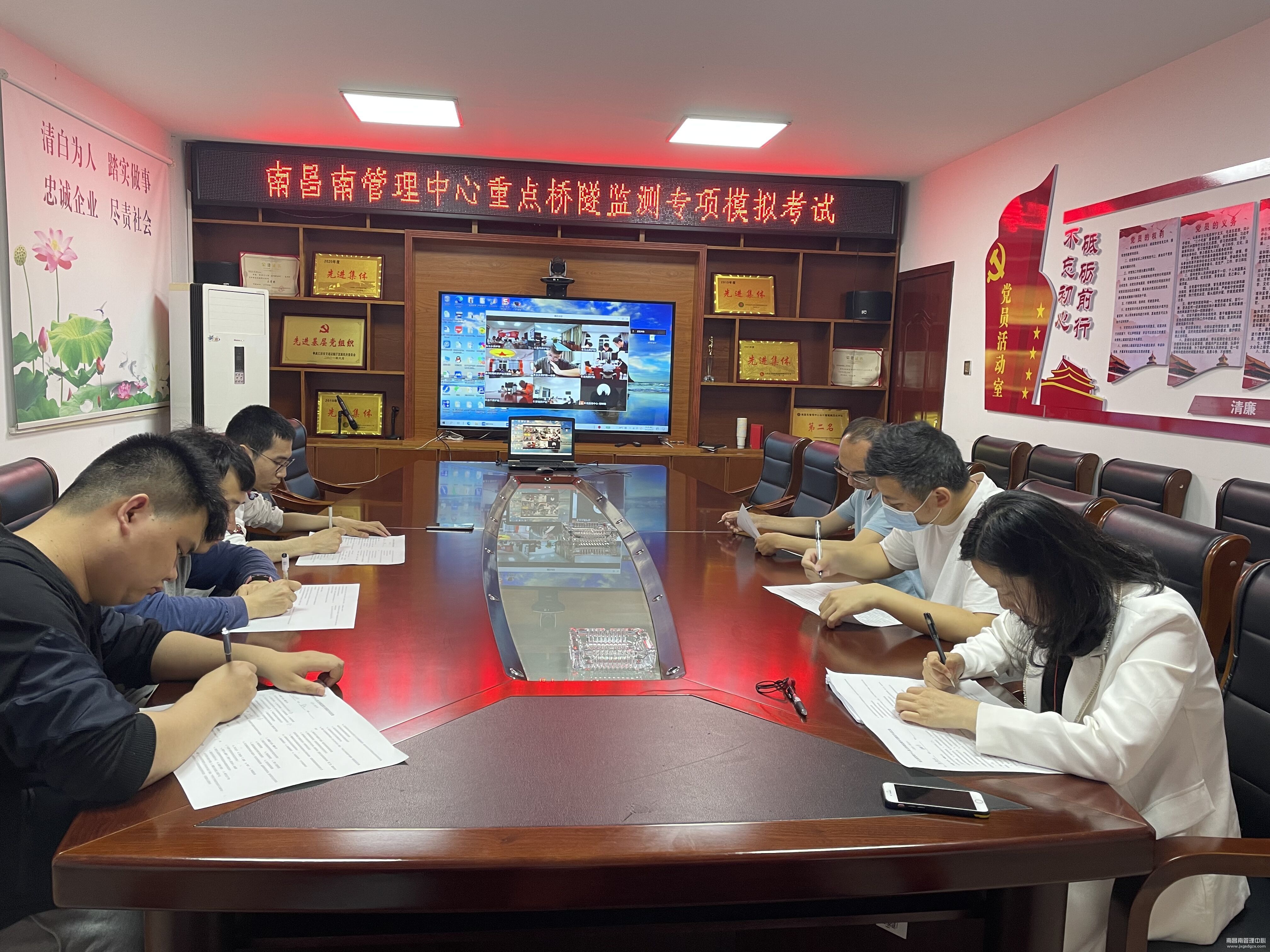 为积极做好2022年度重点桥隧监测评价备检工作,4月27日晚上,中心组织开展了重点桥隧监测专项模拟考试,所站桥梁管理工程师、技术人员共计24人参加考试。